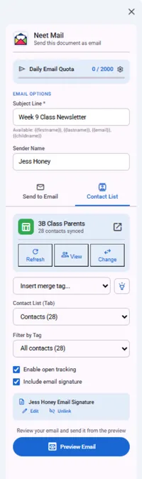 Neet Mail is a Google Workplace Marketplace™ app that makes it super easdy for users to send newletters, markeing emails and group emails without ever leaving the Google Docs™ interface.