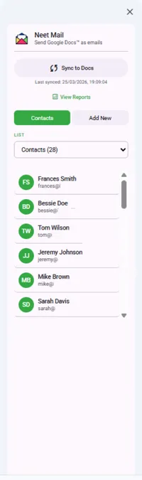 Turn your Google Docs™ into powerful email campaigns. Neet Mail lets you send personalized emails directly from Google Docs™ using contact data from Google Sheets™.